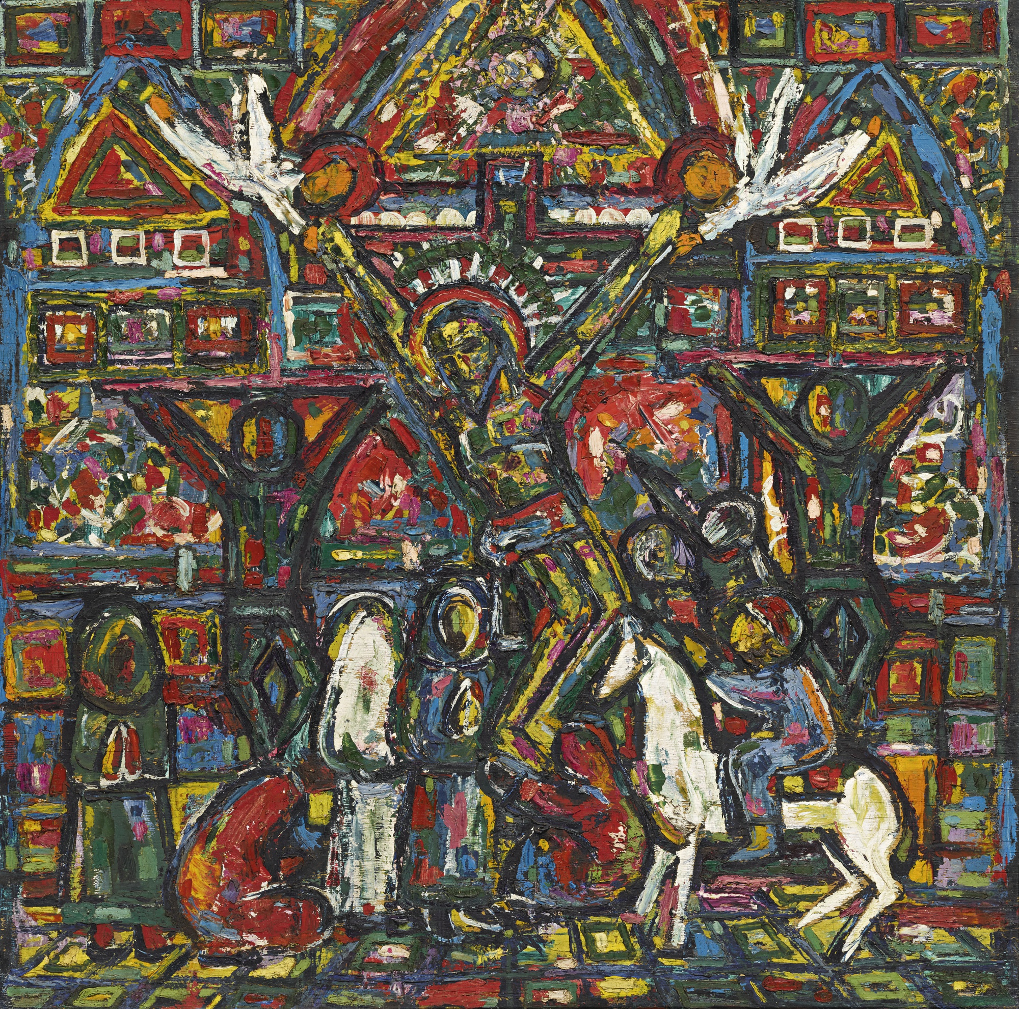 ’s upcoming Modern & Contemporary South Asian Art auction (18 March, New York). Below discover the childhood illness, Catholic ritualism and city landscape that coalesced in this chromatically vivid image.