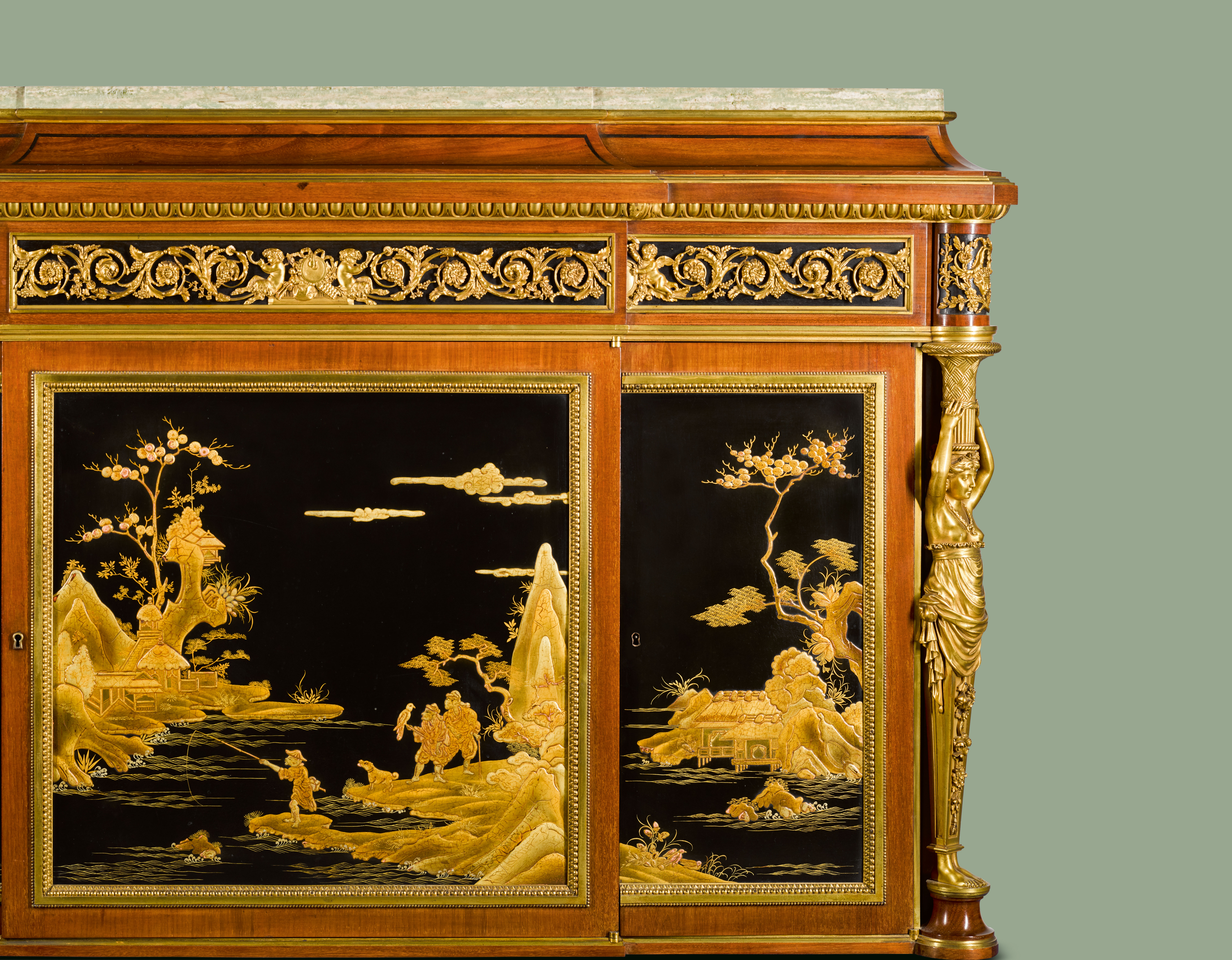 ions, highlights from the sale include a remarkable Louis XV gilt-bronze mounted marquetry commode by Adrien Delorme and an extraordinary expanding dining table by Johnstone & Jeanes.