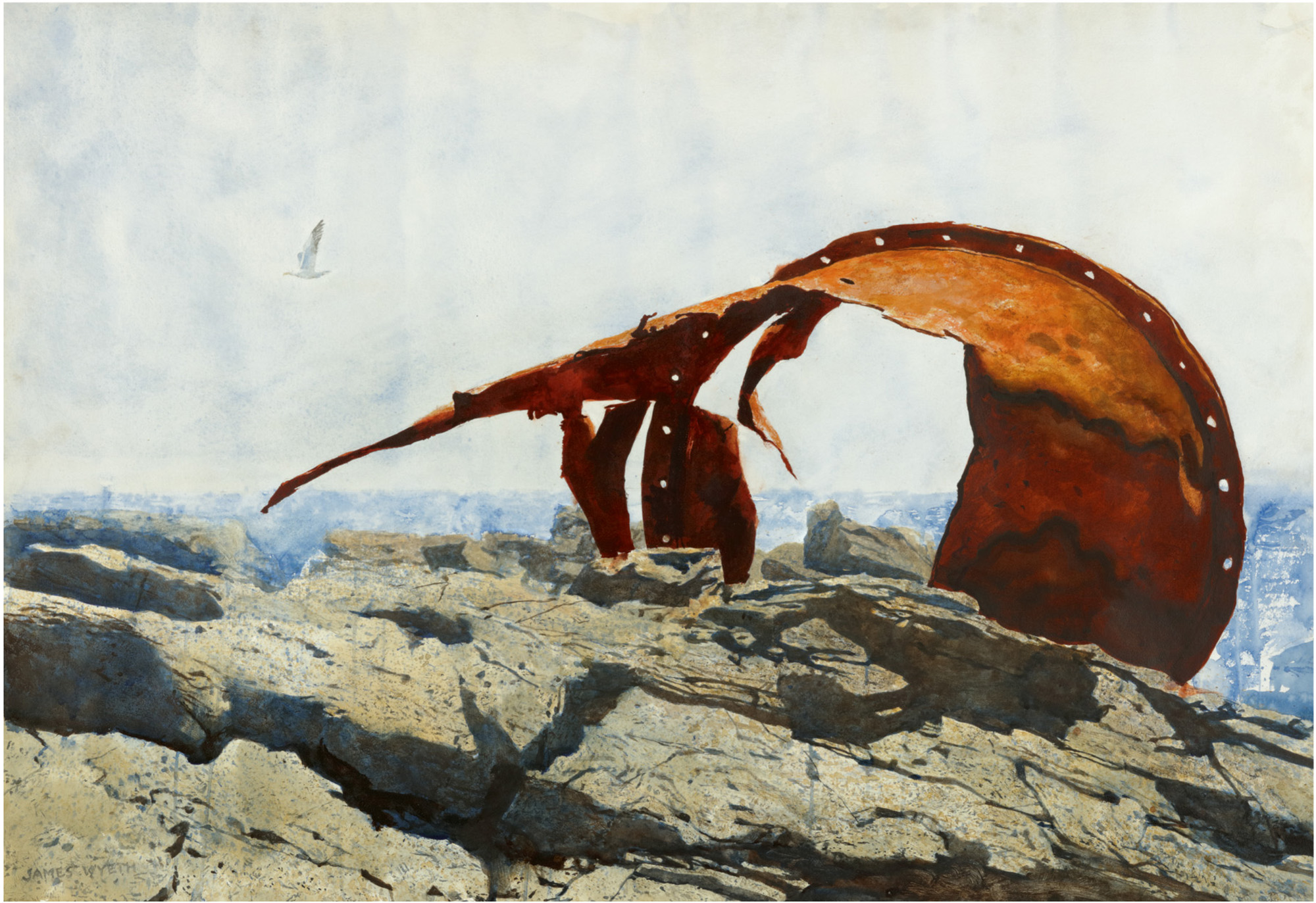 ion of Dr. David Sanders and Prof. Jesse Dukeminier and Jamie Wyeth’s Piece of the Wreck, a striking watercolor executed in 1977 on Maine’s Monhegan island.