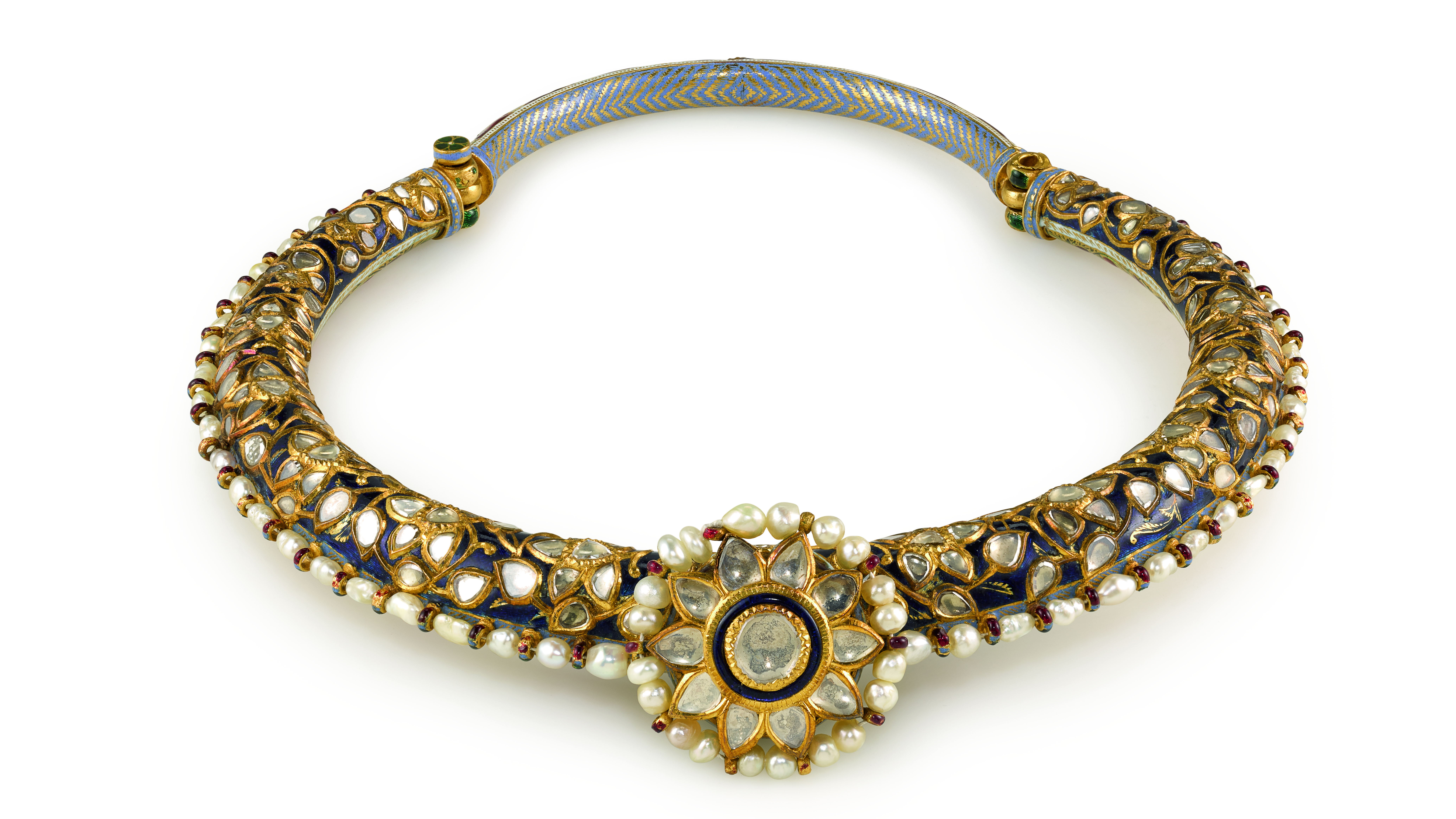 Along with rare ceramics, miniature paintings dating from the 16th and 17th centuries and important calligraphy examples, the upcoming Arts of the Islamic World sale offers a beautiful selection of intricate precious-gem-set and enamelled wedding jewelry from Morocco and India. Click through for selected highlights.