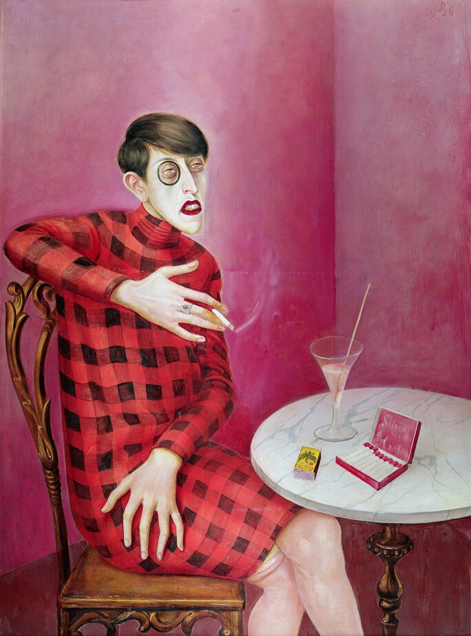Limbs slung over the rails of his chair, Malanga peers through ice-like irises, casting a Medusan gaze. Even in repose, he exudes self-assuredness, imbued with a statuesque gravity. Neel brings a freshness and levity to the historic weight of the seated portrait, not only through her selection of sitters but in her formal strategies. She articulates the contours of Malanga’s figure in pine, olive, aquamarine, and rose; shades of brick, amber, and salmon articulate his flesh, as though her characteristic, unrelenting candor affords her the power to see through skin and into anatomy—that of Malanga’s body and mind, soul and spirit. Here, academic standards of correctness are refuted, as shadows cast by a lackadaisical hand appear on the wall with graphic claritys , and verdant passages on his face and forearm whimsically nod to the green underpainting of Renaissance icons.