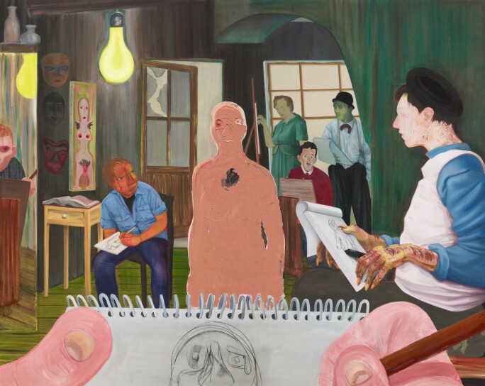 Fratino has emerged in recent years as one of the most exciting yet tender contemporary artistic voices with his examinations of human relationships and queer identity as sites of profound emotive expression. In the flattened depth of his paintings, Fratino situates abstract figures in various corporeal contortions, evincing his formal mastery over foundational Cubist and Modernist techniques employed by artistic forebears like Pablo Picasso and Fernand Léger. Often rendering the male body in figurations of languid repose traditionally reserved for the female nude throughout art history, Fratino’s visual vernacular fuses canonical painterly tropes with personal memory and fantasy to interpret queerness with distinct sensuality and sent.mes ntality. Lauding the present work, Sasha Bogojev writes, “The paintings such as An Argument, 2021…are ‘classic Fratinos,’ deeply personal and revealing images of people he knows and loves, through which the artist is placing the viewer into his most personal spaces… Fratino still feels like ‘a poet of a painter,’ capable of creating both haikus and epics.” (Sasha Bogojev, “Growths of the Earth: Louis Fratino at Ciaccia Levi, Paris,” Juxtapoz, 5 July 2021 (online))