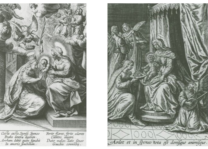 RIGHT: Fig. 2 Antonius III Wierix, The Mystic Marriage of Saint Catherine of Alexandria, in Vita S./ Catharinae virginis et martyris, suite of 20 engravings. Amberes, before 1624.