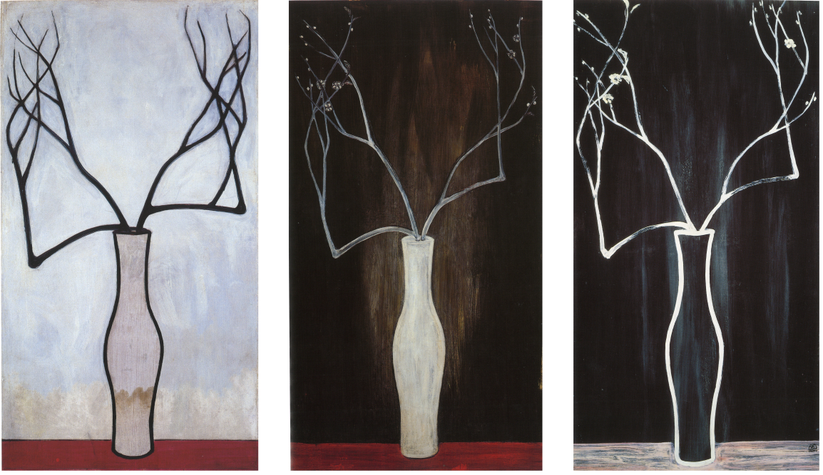 Center: Sanyu, Fleurs de prunier, oil on board, 126 x 69 cm. collects ion of National Museum of History, Taipei, inventory number 26890.