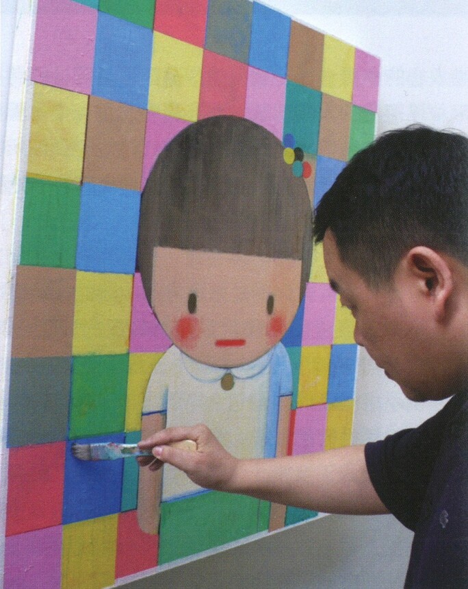 Liu Ye’s Specially For You (Olympic 2008) was commissioned for a special charity event in honour of the 2008 Beijing Olympics. An iconic image, the present composition appears in editioned prints by the artist, which feature the exact same vision of a colorful gridded background and a chubby-cheeked girl, with the five colored balls in the young protagonist’s hairpiece representing the colored rings of the Olympic symbol. The cheerfully choreographed composition straddles figuration and geometric abstraction, realism and post-modern appropriation, manifesting as a superlative paradigm from Liu Ye’s oeuvre.