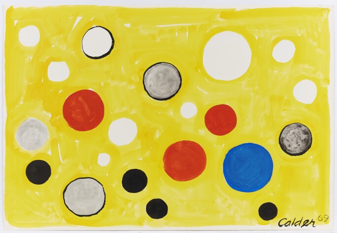 Revolutionizing the nature of sculpture from static forms to harmonies of color, balance and movement, Calder devised one of the most groundbreaking artistic innovations of the past century. The artist’s distinct sculptural, aesthetic and conceptual ingenuity was apparent from an early age, even before enrolling in the Art Students League in New York in 1923 to study painting. The artist’s formative years were spent in Paris, and it was there, prompted by a visit to Piet Mondrian’s studio in 1930, that he made the move into abstraction. Entranced not by the Dutch artist’s paintings but by a series of colored rectangles Mondrian had tacked to the wall “in a pattern after his nature”, Calder speculated aloud that he “would like to make them oscillate–[Mondrian] objected." As Calder famously recalled of this experience, “Though I had heard the word ‘modern' before, I did not consciously know or feel the term ‘abstract.’ So now, at thirty‑two, I wanted to paint and work in the abstract” (Alexander Calder, Calder: An Autobiography with Pictures, New York, 1966, p. 113.