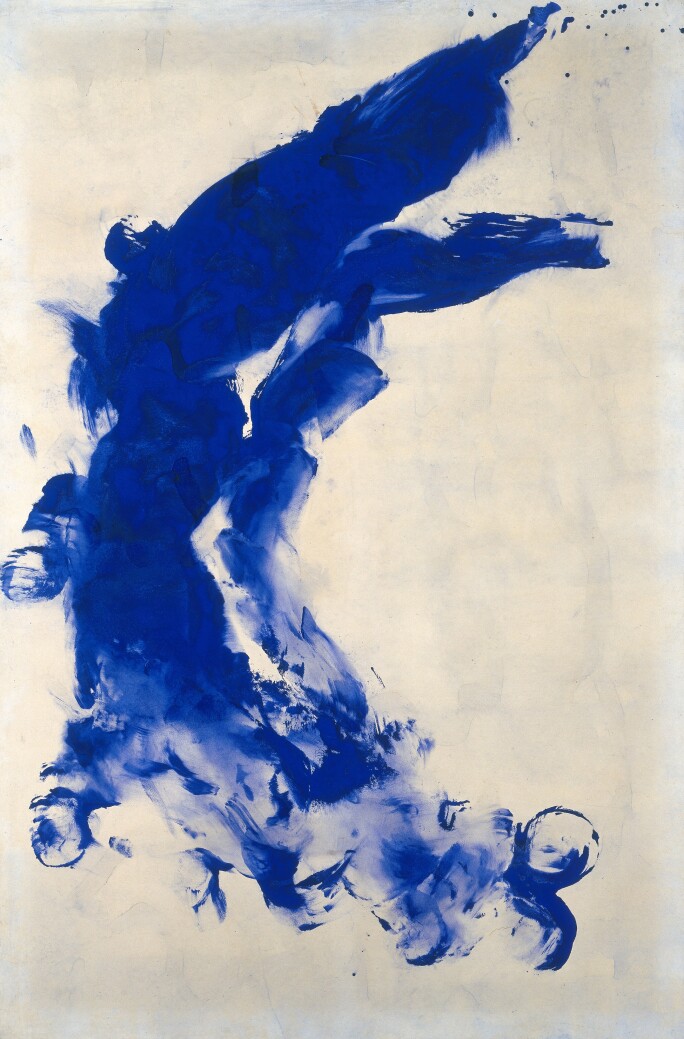 Further, the electric azure blue of the hand-painted canvas amplifies the painting’s underlying metaphysical concept: its vividness and intensity invoke the great expanse of the sky above. Like the transcendent color field paintings of Mark Rothko, the monochrome hue draws the viewer into introspective meditation. This particular shade of cobalt not only evokes the contemplative sensation of gazing into the heavens on a clear day, but also echoes Yves Klein’s series of Anthropometries, and his trademark IKB pigment. Klein famously used the human body as anthropomorphic brushes, dragging and imprinting forms across sheets of paper and canvas; in the present work, poetic incisions imbue the celestial blue canvas with rhythmic movement. Fontana's spatial openings find further parallel in Klein's progression from the monochrome to the void, which similarly suggests an immaterial presence to invoke cosmic and spiritual ideals. Fontana and Klein's reciprocal influence on each others' artistic practices resonates in their respectively distinct dynamic and sensual approaches to abstraction, both privileging a radicalizing renegotiation of the pictorial surface. Where a 19-year-old Klein, lying on a beach in Nice, imagined signing his name in the clouds and declaring the sky as his first work of art, so Fontana distilled the sky's unknowable essence and abyssal blue into the very fabric of the present work.