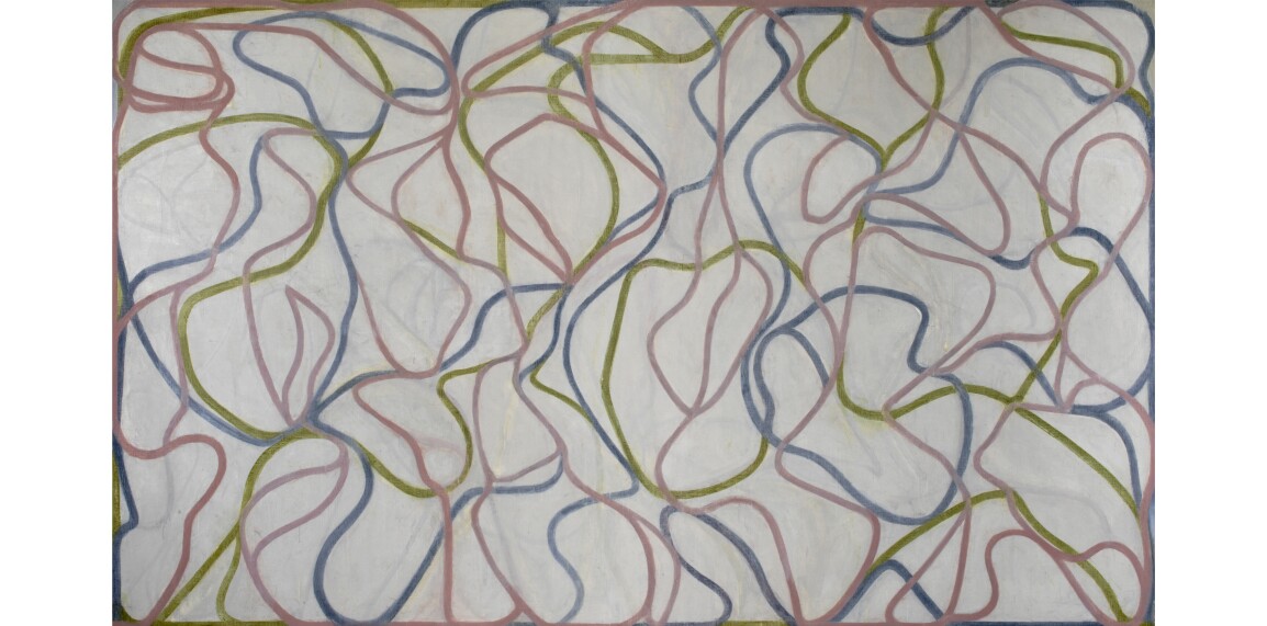 While not immediately visible at first glance, a rewarding element of this canvas is Martin’s emblematic pencil marks. The horizontal bands stacked atop each other look repeated, straight, and precisely uniform from a distance. Upon closer inspection, it is revealed that Martin’s meticulous process lends way to each ruling being slightly irregular and entirely unique. Martin’s rigorous yet profoundly personal process begins with brushing layers of white primer across the canvas. Rather than meticulously stretching out the priming coat to get a uniform surface one would expect from gesso, she never shied away from leaving her brushstrokes visible and embraced the subtleties of the canvas itself. It is upon this surface that the artist pares down composition to the most fundamental forms with her graphite pencil, the hand tracing the straight lines of the ruler or masking tape she uses, slight irregularities in the pencil lines invoking the artist’s hand grazing along the bumpy primer and skipping from peak to peak, recording where the artist picked up her pencil, paused, and then resumed. The bands of paint traverse the monochrome canvas from left to right, their path at t.mes s discreetly diverted by the gentle bumps in the gessoed canvas, vibrating with a quiet humming energy that is such a celebrated feature of Martin’s oeuvre. The resulting work oscillates between the conceptual rigor of her drafting and her deeply human imprecision, trotting along hairline pencil markings to a steady but variegated rhythm, immersed in the graceful elegance of Martin’s signature aesthetic vocabulary.