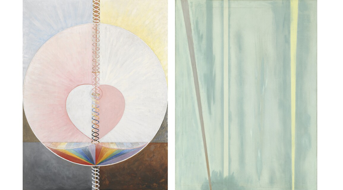 Another essential facet of Martin’s contemplative experience presented in Untitled #11 is the stunning colors of the work. Thin layers of acrylic paint shimmer with a resplendent vitality as the bright primer underneath absorbs and reflects light. The airiness of the tinges makes them nearly indescribable, even as they emanate a liveliness that almost takes physical hold of the viewer, all the while eluding understanding. Upon closer inspection, the hushed tonalities of white and blue reveal a more painterly fluctuation as the paint, built up with countless applications of thin brushstrokes, discreetly wavers from the tactile materiality of pigment to the diaphanous ethereality of scattering light. While the artist resisted critics’ comparisons of her compositions with natural imagery, it is easy to imagine how the unencumbered horizontal stripes are reminiscent of the expansive azure skies and billowing white clouds of Taos. Much like the seemingly limitless horizons in the vistas of New Mexico, where the sky meets earth in a gentle embrace, Untitled #11 marries the artist’s conceptual depth with spiritual power into a painting breathtaking in its sophisticated brilliance.