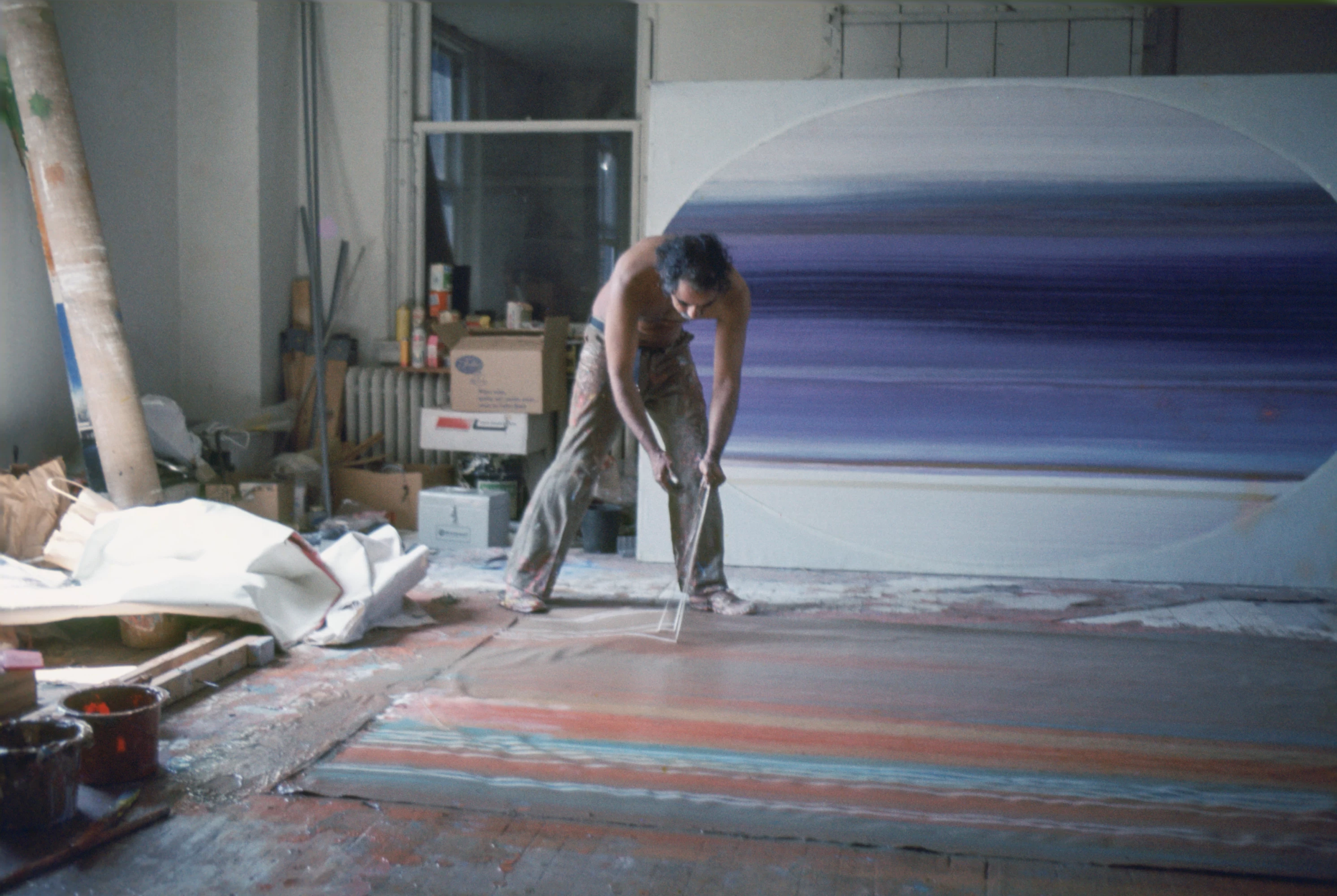 A soothing expanse of buoyant color spanning eight feet in width, Ed Clark's Louisiana Beige of 1975 stands as a monumental paragon to the artist's profound ability to capture the beauty of the natural world through the visual language of abstraction. Emerging from the artist’s Louisiana series, the present artwork deftly expresses the soul of the artist’s home state of Louisiana through sweeping strokes of beige and aquamarine pigment. Clark’s initial inspiration for the series came in 1971 during a trip to his artist friend Jack Whitten’s house on the island of Crete. Struck by the Mediterranean’s natural beauty, Clark executed about a dozen pastels in an effort to encapsulate the island's vibrant color and majestic light. Inspired by this new environment, Clark’s palette started shifting towards softer pastel tones that imbued his canvases with an ethereal quality. An ode to the scenic splendor of his home, Louisiana Beige reaches beyond the abstract and into the sublime.