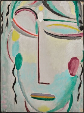 The present lot was painted while Jawlensky was living in Switzerland and marks a fascinating point when he was moving from his Saviour’s Face series to the further stylized and pared-down Abstract Head series. His post-war paintings reflect a more spiritual approach or “art [as] the longing for God” (Exh. Cat., London, Royal Academy of Arts, Masters of Colour: Derain to Kandinsky, 2002, p. 142). The faces from the present series are reminiscent of Russian icons in formal terms, with their strong sense of symmetry, frontal representation and use of black lines, but at the same t.mes become increasingly abstract, each chromatic variation a mystical expression of an inner state. The field of vision is closer cropped than before: these are faces not heads, and while the intensity of expression is not diminished, it is intense serenity rather than angst, often executed in the restrained, cooler color palette found in the present lot. The geometric elements presage his development towards the more rigorous approach to abstraction, evident in another "moonlit" painting in the collects ion of the Seattle Museum of Art (fig.4).