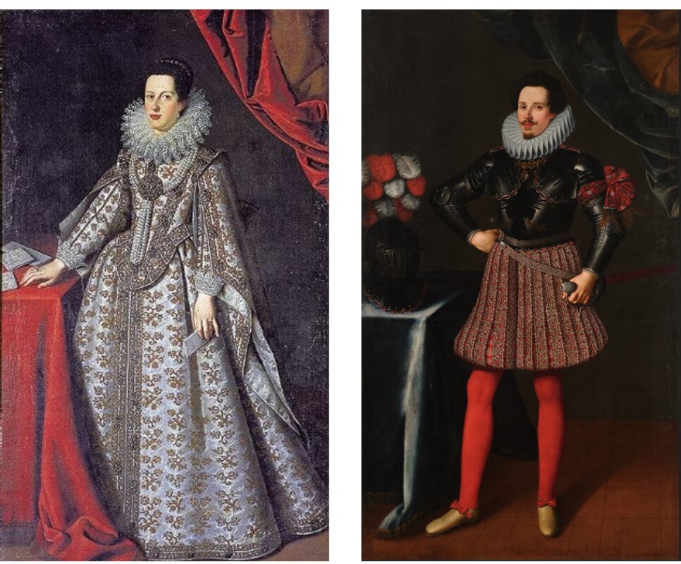 Tiberio Titi was among the most accomplished portraitists active in early seventeenth-century Florence and the son of the eminent painter and architect Santi di Tito. His refined handling, sharp lighting, and assured sense of format are evident here and closely relate to his documented portrait of Ferdinando’s wife, Caterina de’ Medici in white (fig. 1), a work long misattributed to Giusto Sustermans but now securely recognized as Titi’s.2 That portrait has been identified with a full-length likeness Titi mentioned in a letter of 20 April 1618 to the Medici court secretary Andrea Cioli. A second version of the present portrait is preserved in the Uffizi Gallery, Florence (inv.no. 1890/2330), with minor variations in the folds of the curtain and tablecloth and the position of the duke’s right hand. Although Medici–Gonzaga correspondence documents Titi’s presence in Mantua in 1618 to paint other members of the Gonzaga family, no letters refer to a portrait of Ferdinando himself. This absence, together with the sash embroidered with the initials "CM" (Caterina de’ Medici) tied around the duke’s arm in both versions, suggests that the present portrait and the Uffizi picture were likely painted in Florence in 1617, during Ferdinando’s visit to Tuscany for his marriage. An inventory of the Pitti Palace compiled between 1663 and 1664 records a portrait of Duke Ferdinando of Mantua displayed in the apartments of Prince Mattias de’ Medici, attesting to the early Medici appreciation and prominence of this striking image of Gonzaga power and dynastic ambition.