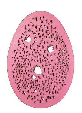 Fusing not only artistic and scientific concepts into his Spatialist theories, Fontana draws upon centuries of literary, religious, and philosophical allusions as well. As the universal visual referent of birth and creation, the egg clearly has a longstanding history as a potent symbol in the iconographical lexicon of human history. For millennia it has acted as a sign of fertility and hope, representing the cycle of regeneration and new life. From the graphic sign of femininity in Egyptian hieroglyphs to its symbolic depiction by canonical artists such as Hieronymus Bosch, Piero della Francesca, Diego Velázquez, RenĂ© Magritte, Salvador DalĂ, and Constantin Brancusi, imagery of the ovum has long delivered variously esoteric semiotic interpretations associated with the origin of the world. In this context La fine di Dio assumes an almost womb-like identity. However, an egg's capacity to incubate depends upon the consistency of highly fragile conditions: obviously a broken egg is useless as a life-support. Pierced by violent lacerations, Fontana’s oval here recalls the mythic Orphic Egg, from which Phanes, the mystic primeval deity of procreation and the generation of new life, burst forth. Many critics have also drawn a parallel between Fontana’s bodily punctures and the stigmata wounds of Christ, in their symbolism of man’s spiritual release from matter. This reading of the holes as a visual metaphor for the liberation of man from materiality is supported by the artist’s own words: “Man must free himself completely from the earth, only then will the direction that he will take in the future become clear. I believe in man’s intelligence – it is the only thing in which I believe, more so than in God, for me God is man’s intelligence – I am convinced that the man of the future will have a completely new world” (Lucio Fontana in conversation with Tommaso Trini, 19 June 1968, in Exh. Cat., London, Whitechapel Art Gallery, Lucio Fontana, 1988, p. 36).