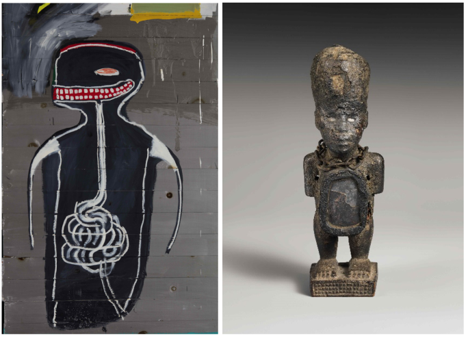 right: Power Figure: Male (Nkisi). 19th - 20th century. Democratic Republic of the Congo, Kongo peoples. Wood, glass, metal, cloth, organic matter. H. 7 3/4 x W. 2 1/2 x D. 2 1/2 in (19.7 x 6.4 x 6.4 cm), The Michael C. Rockefeller Memorial collects ion, Purchase, Nelson A. Rockefeller Gift, 1968 (1978.412.574) New York, Metropolitan Museum of Art © 2021. Image copyright The Metropolitan Museum of Art/Art Resource/Scala, Florence