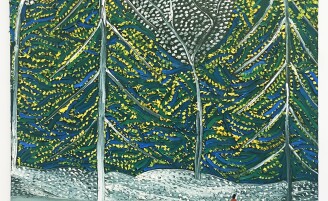 Dizzying and soothing in equal measure, Matthew Wong’s The Night Watcher reveals the range of the artist’s idiosyncratic visual language of texture and color as he captures the serenity of a turquoise forest nightscape in its full kaleidoscopic brilliance. Like Caspar David Friedrich, Vincent Van Gogh, and others of his Romantic and Impressionist forebears, Wong was deeply moved by the natural world, expressing his contemplative fascination with nature through scintillating visions that combine the stylistic grace of Gustav Klimt’s jewel-like paintings and Peter Doig’s fantastical dreamscapes. Featuring a solitary figure set against the vibrant landscape, a significant motif in Wong’s work that suggests his musings on the loneliness of contemporary life and highlights the splendor of nature, The Night Watcher is a dazzling example of how, as Eric Sutphin describes, “despite their ebullient palette, [Matthew Wong’s paintings] are frequently tinged with a melancholic yearning.” (Eric Sutphin, “Matthew Wong,” Art in America, June 2018 (online))