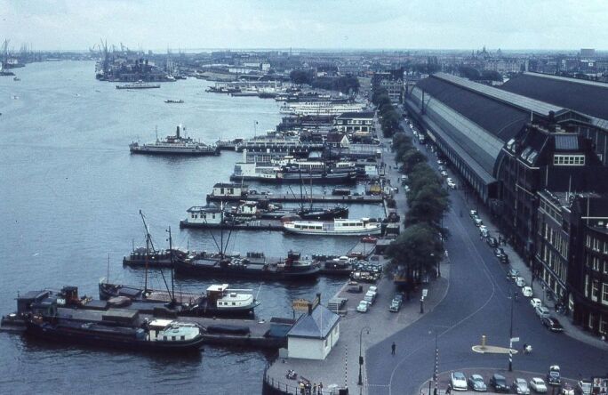 In the 17th century, during the Dutch Golden Age, the IJ became the beating heart of Amsterdam’s marit.mes empire. Ships of the Dutch East India Company departed from its quays to trade across Asia, Africa, and the Americas. By the 1950s, when Affandi visited, the IJ was dominated by harbours, docks, warehouses, and shipyards, as it function as Amsterdam's main mart.mes gateway to the North Sea. Major infrastructures were built in 1950s to accomodate Amsterdam’s population growth, that would eventually transform the area to the vibrant waterfront seen in Amsterdam today.