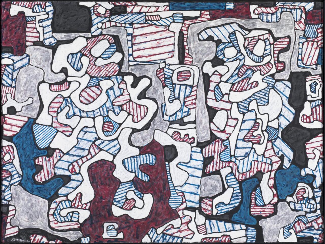Jean Dubuffet’s deliberate rejection of cultural pretensions and unique Art Brut aesthetic have brought him acclaim as one of the most celebrated artists of the Twentieth Century. Indeed, his candid critique of occidental cultural institutions and fervent dismissal of conventional artistic values have earned him critically lauded retrospectives at major museums such as the Solomon R. Guggenheim Museum New York, the Museum of Art, Dallas, and the Walker Art Center in Milwaukee, among numerous others. The present work, Rue Tournique Bourlique, executed at the very peak of his artistic prowess, is brimming with a vibrancy that wholly exemplifies the compositional dynamism, painterly skill, and imaginative enthusiasm that define Jean Dubuffet’s highly esteemed L’Hourloupe cycle.