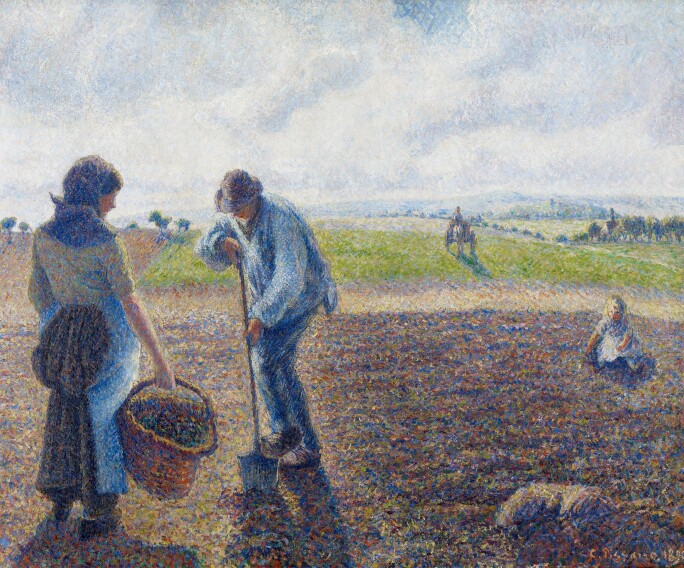 In 1884 Pissarro moved to the village of Éragny-sur-Epte and the rich surrounding countryside would prove a source of inspiration for much of the rest of his career. Pissarro’s first years at Éragny coincided with him adopting a number of Neo-Impressionist techniques in his paintings, with the artist driven by a desire to propel his work forward and away from classic Impressionism, which in his view had by then outgrown itself.