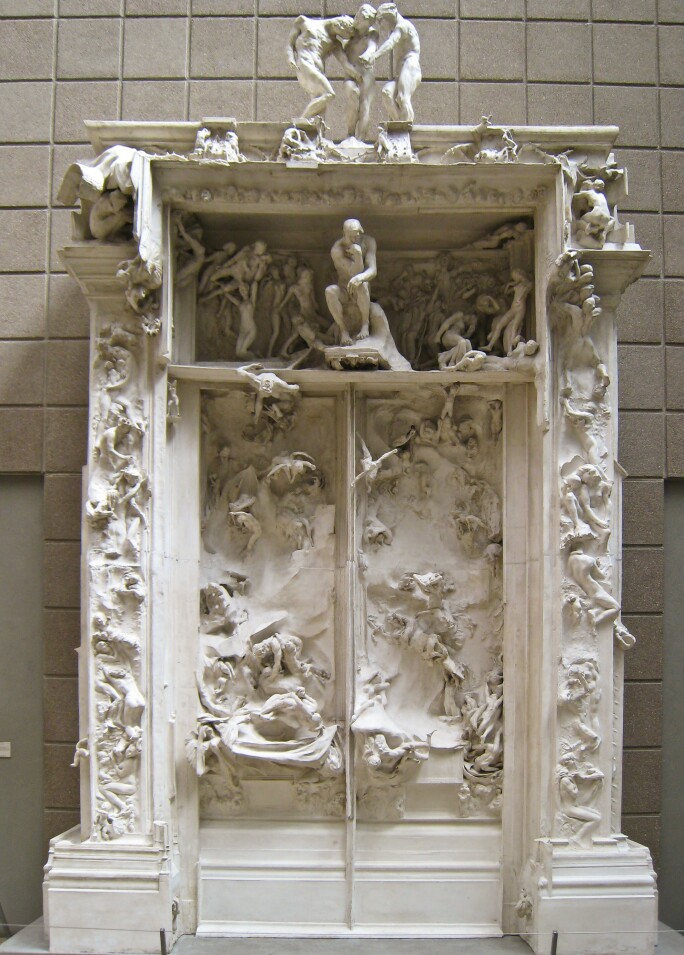 Cariatide à la pierre, petit modèle is a rare early cast of Rodin’s famous composition, whose original form the artist first brought to life as part of his lifelong opus La Porte de l'Enfer, the visual embodiment of Dante Alighieri’s Inferno (fig. 1). La Porte de l'Enfer started as a commission for a door in the planned Musée des arts décoratifs in Paris, although neither the door nor the museum were ever completed. Measuring over six meters in height, La Porte de l'Enfer incorporates hundreds of figures, including many of the artist’s most celebrated works: Le Penseur, Le Baiser, Adam and Ève. Cariatide was placed in the upper left corner of the portal, partially shrouded by scrolling decoration. Her form was created within the first year or so of this commission and was exhibited as an independent sculpture as early as 1883.