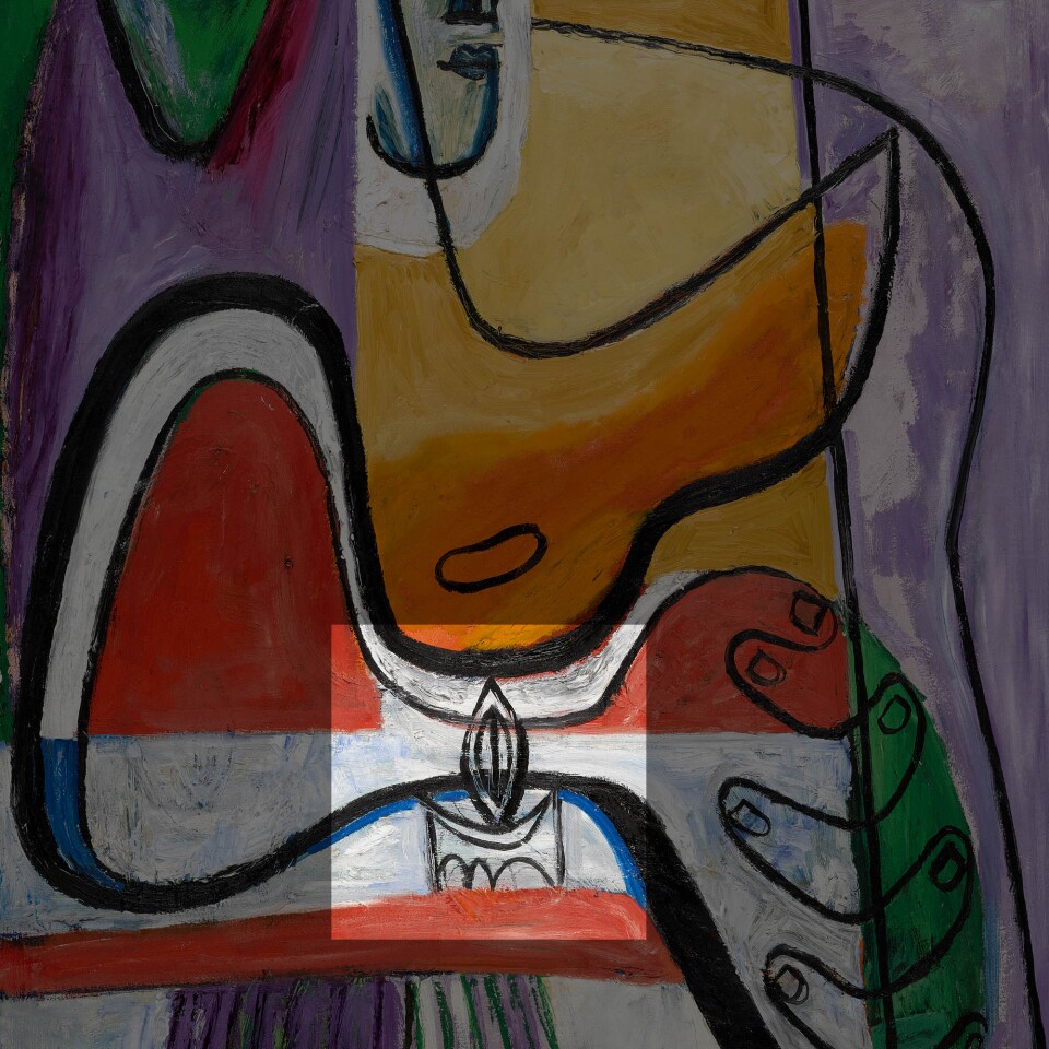 In 1946, Le Corbusier left war-torn France for New York City where he would spend much of the next two years. During this period, his paintings underwent a radical transformation. He developed a freer style and began to focus on the female figure--a subject that would dominate his imagery for the rest of his life. Femme a la Bougie I, a seminal painting from 1946, is a portrait of the artist's beloved wife, Yvonne, holding a candle. Here her abstracted figure glows brightly with the allure of a star and reveals the most reverent and intimate sides of Le Corbusier's temperament. The painting's bold contrasts of complementary colors depart from the pastel hues of his earlier Purist aesthetic in favor of a more arresting pictorial light. Femme a la Bougie I inaugurated the first of three major groups of portraits of Yvonne. This picture was recently restored and until now has remained exclusively with the family of Le Corbusier's close friend, artist Costantino Nivola to whom he gifted it in 1947.