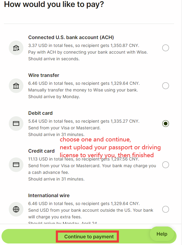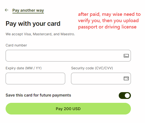 Choose payment by MoneyGram or Wise directly, they support credit card and debit card.
