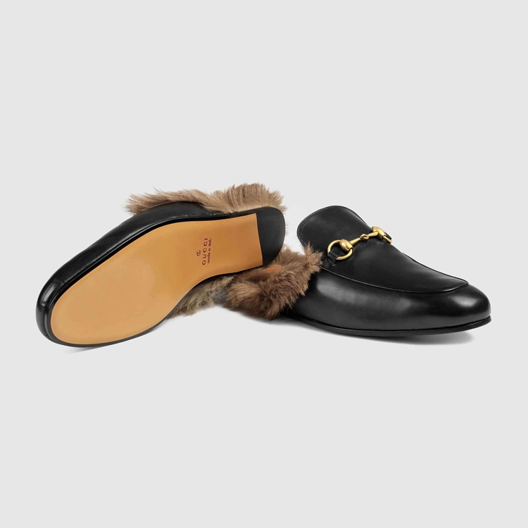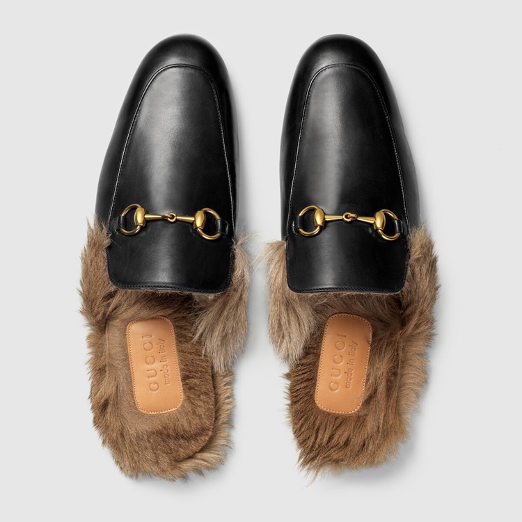 Style 397647 DKHH0 1063 Emblematic looks from The first Alessandro Michele collection are presented again For The Ouverture collection and create a link to Gucci’s rich history. The Princetown slipper is fully lined and trimmed With lamb wool then finished With The House’s signature Horsebit detail.