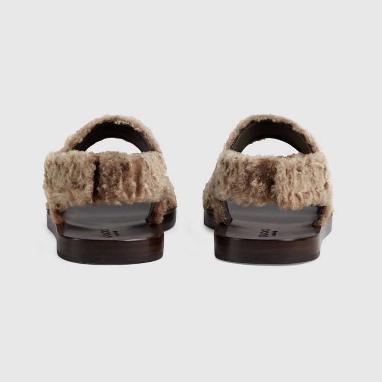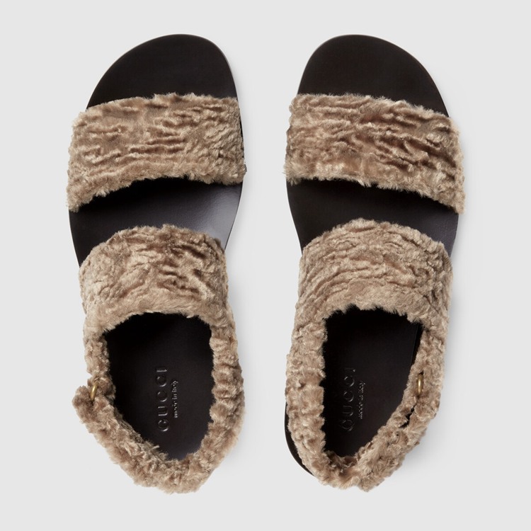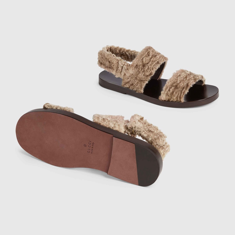 Style 657209 2W600 2618 Emblematic looks from The first Alessandro Michele collection are presented again For The Ouverture collection and create a link to Gucci’s rich history. Crafted from textured velvet, This sandal plays With The unexpected.