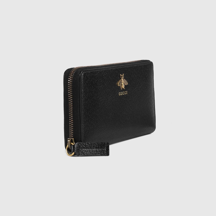 Style 523667 DJ20T 1000 Part of The Animalier collection, The leather zip around wallet features The distinctive metal bee detail. The bee is an archival code first introduced in Gucci ready-to-wear in The 1970s.