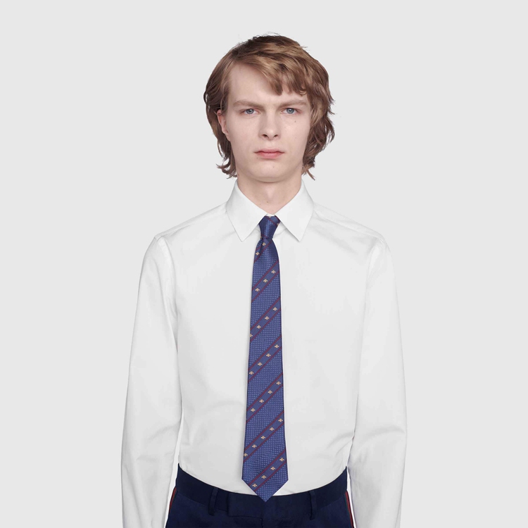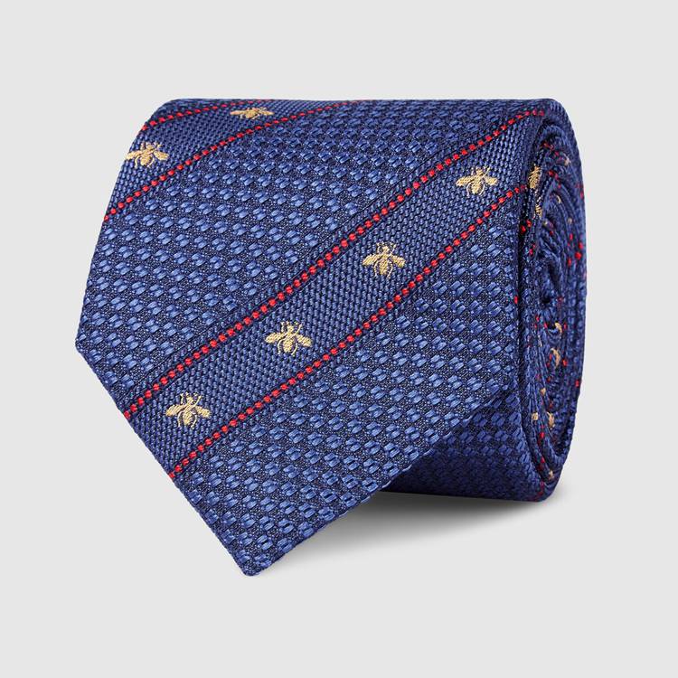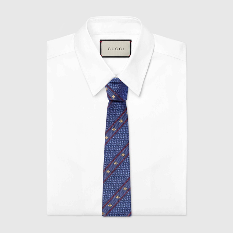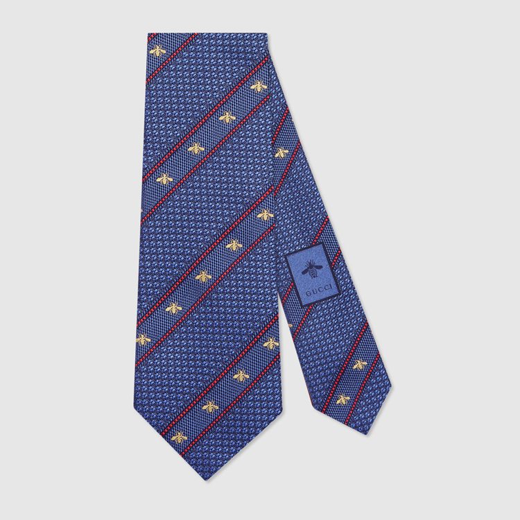 Style 451528 4E002 4574 The bee is an archival code first introduced in Gucci ready-to-wear in The 1970s. Here, it is found on a silk tie along With The House’s Web stripe motif.