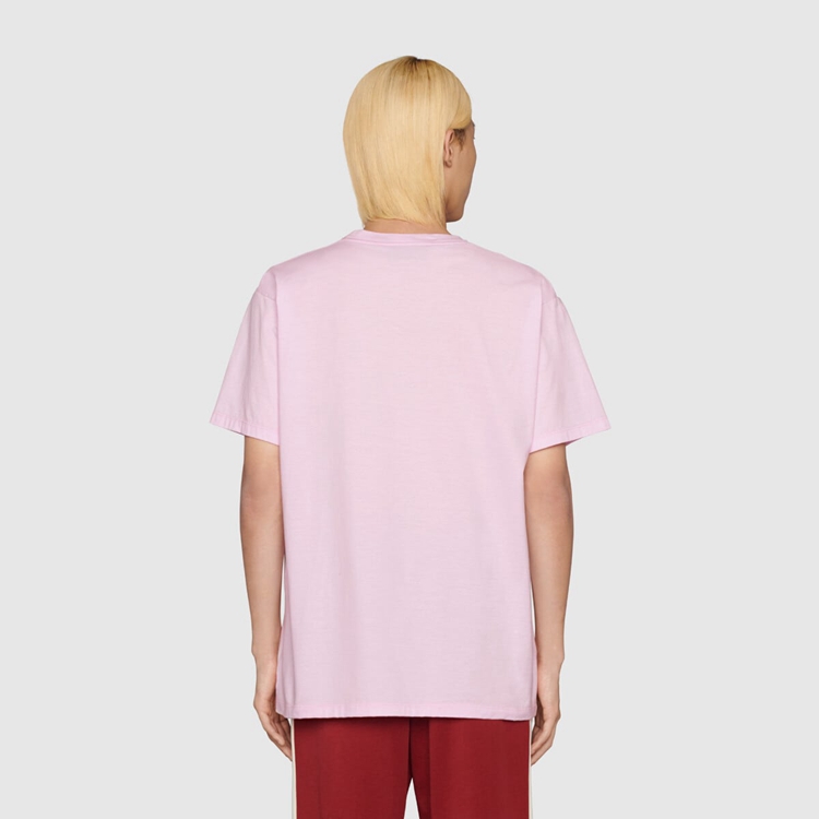 - Light pink cotton jersey With black ‘Blueberry Gucci’ print
