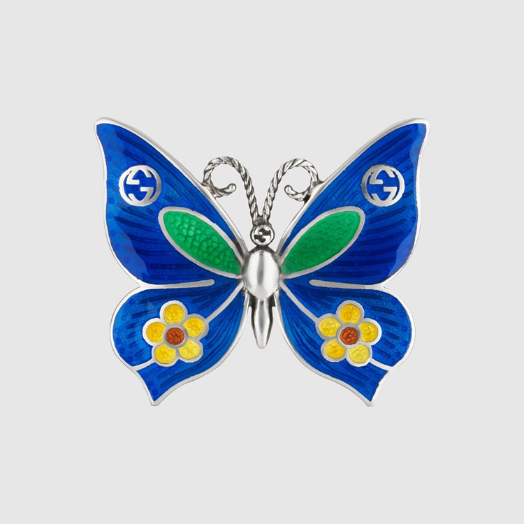 - Blue, green and yellow enamel butterfly With Interlocking G details