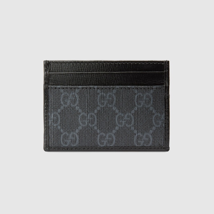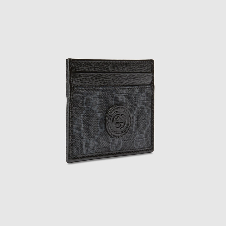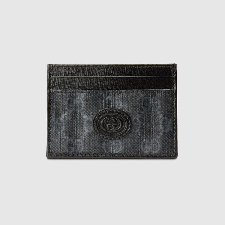 Style 673002 92TCN 1000Different interpretations of The House logo come together atop This card case. Crafted from black GG Supreme canvas, The accessory is completed by an oval Interlocking G tag. The combination of The two archival details imbue The design With a vintage appeal.