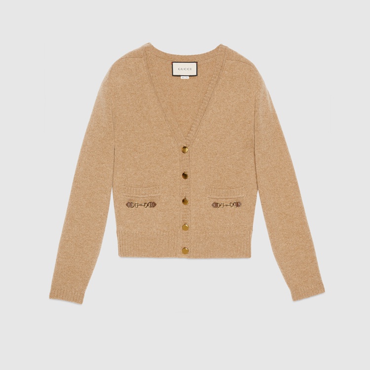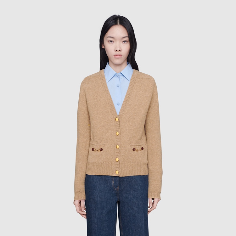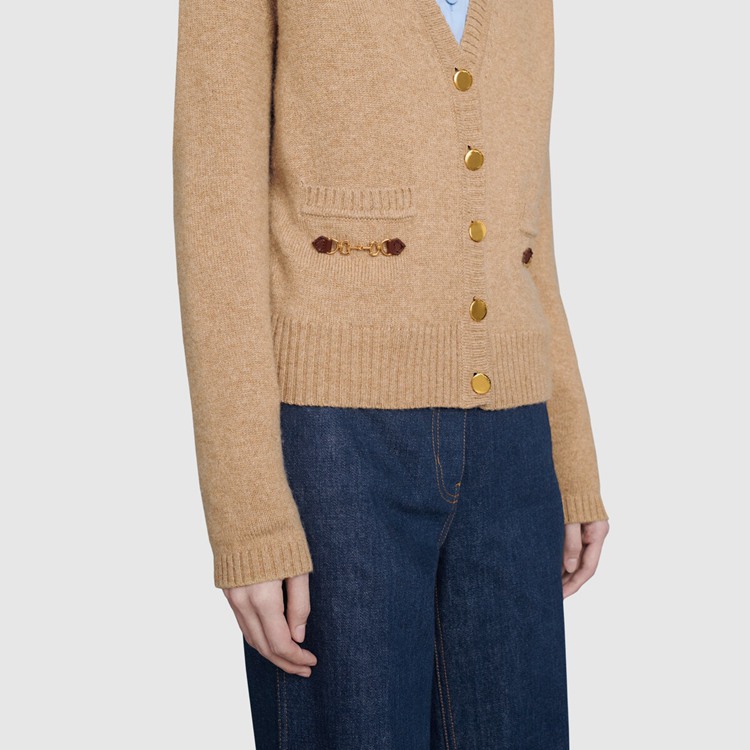 Style 628412 XKBH9 2184 Classic knitwear Designs in sophisticated Color schemes are enriched by refined details and Emblematic House codes. Crafted from camel soft cashmere, This cardigan features The gold-toned metal Horsebit—a notable Gucci symbol borrowed from The equestrian world—paired With subtle leather details.