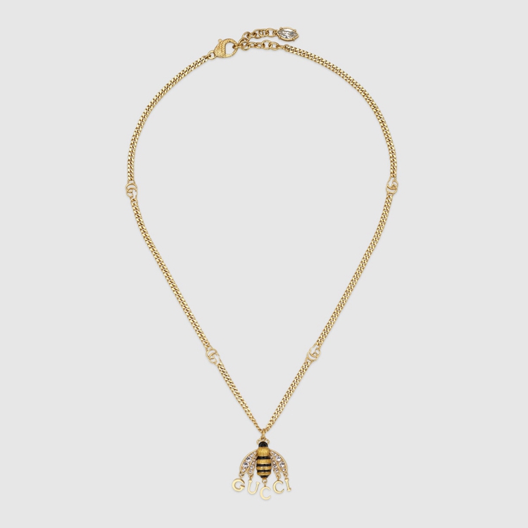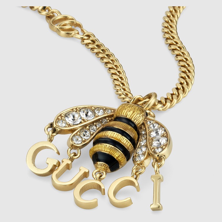 - Enamel bee pendant With crystals and Gucci script detail