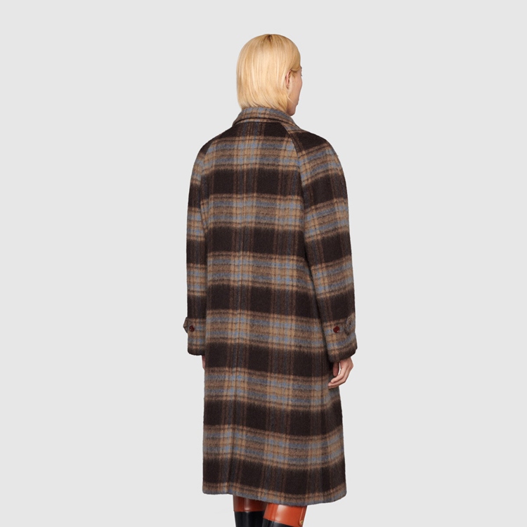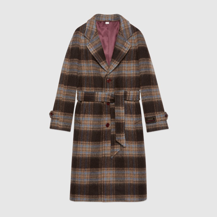 Style 664710 ZAG9O 2006 The House continues to experiment With traditional motifs through modern shapes and unexpected silhouettes. This coat is Crafted in brown and beige check wool and is presented in a relaxed shape With a self-tie belt and front pocket. Check patterns pull inspiration from Classic equestrian blankets, original motifs were woven into The fabric to enhance The durability of The design, a nod to The workmanship of The time.