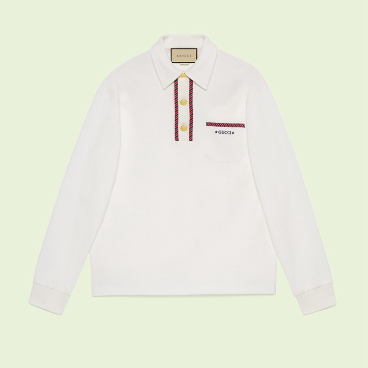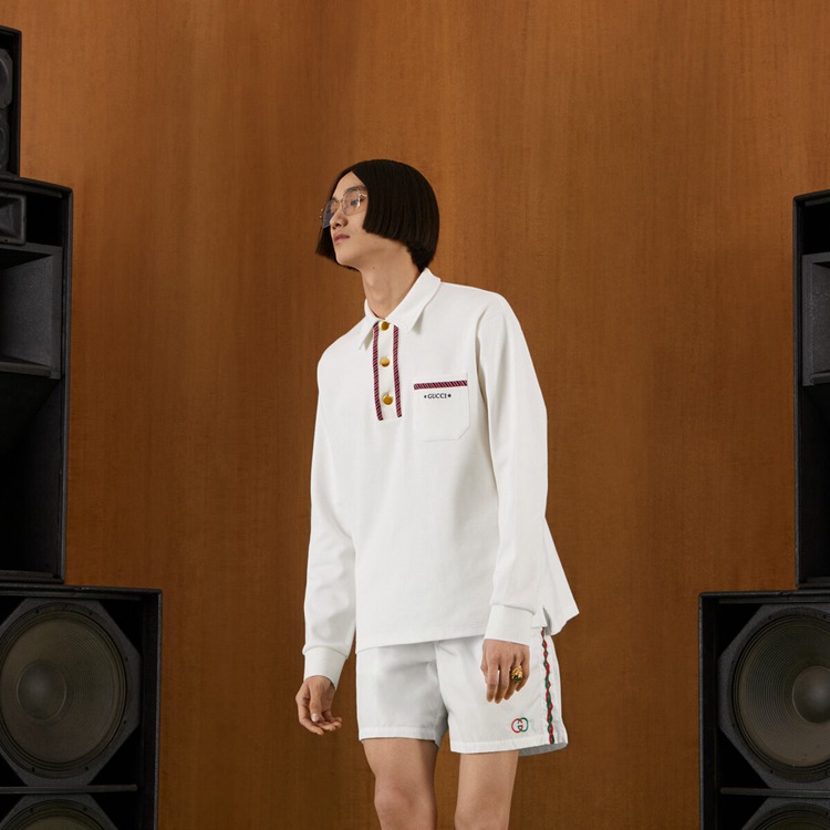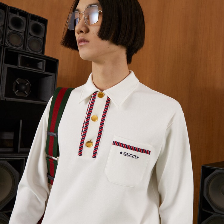 Style 692134 XJD7L 9275Archival details continue to evolve For a subtle logo presence throughout Gucci’s latest collections. For Gucci Love Parade, The stripe is presented as a torchon detail and is paired With The Interlocking G detail on This cotton polo shirt.