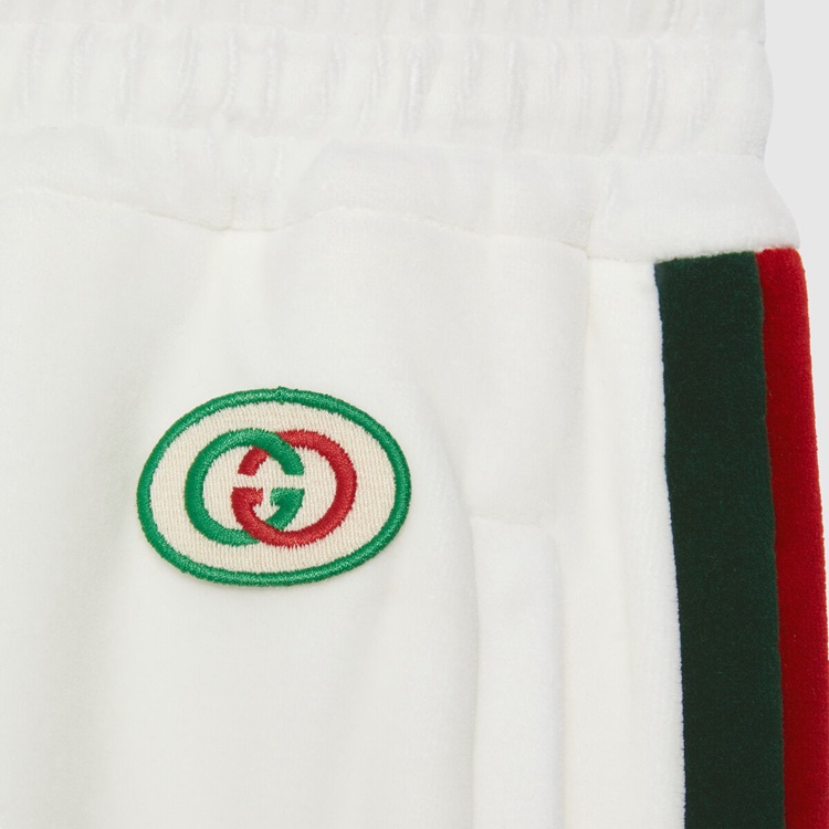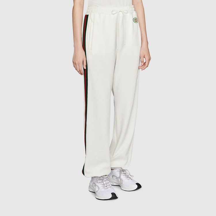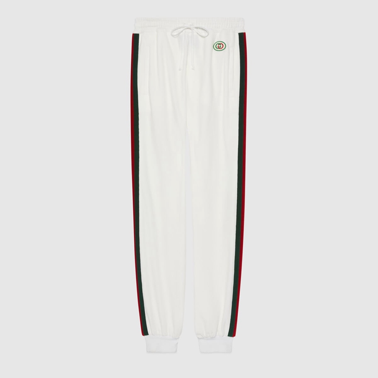 Style 678641 XJDYG 9061 Imbued With references to vintage sportswear, This pair of cotton jogging pants embodies The preppy influence of The collection. Trimmed With a chenille green and red Web down The sides, The style is completed With an Interlocking G patch.