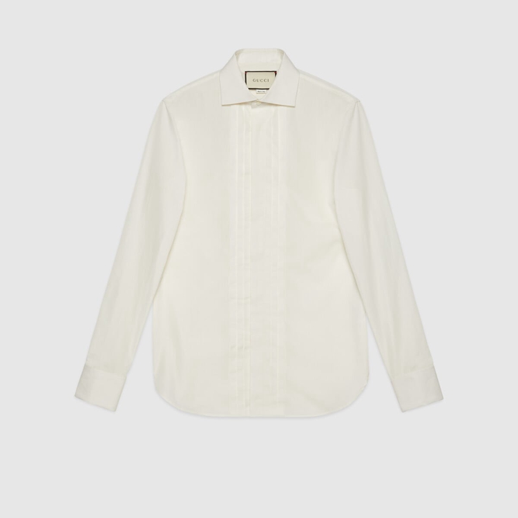 Style 581432 Z3599 9072An elegant formal shirt Crafted from cotton poplin and enhanced With front pin-tuck details. The style is completed With a tailored fit and collar.