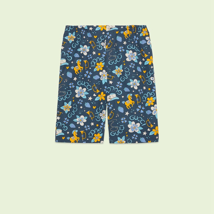 Style 672698 ZAITH 4520 Gucci Love Parade celebrates freedom of expression and love in all its various forms. Continuing This joyful narrative, a multicolored flourish of Retro flowers, hearts, stars, and prancing ponies decorate These cotton shorts. The Interlocking G appears as a small detail on The pony saddle, completing The design With a discreet logo feel.