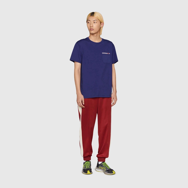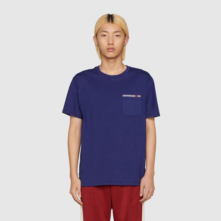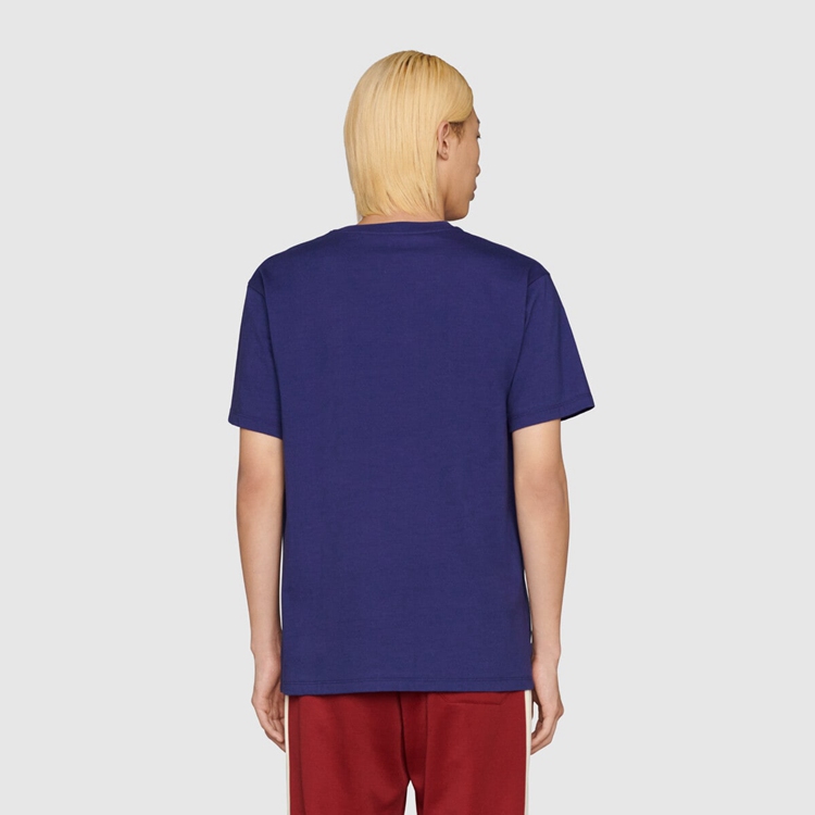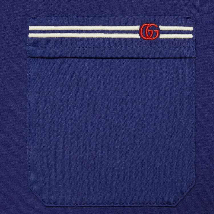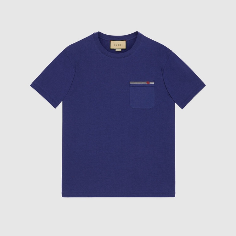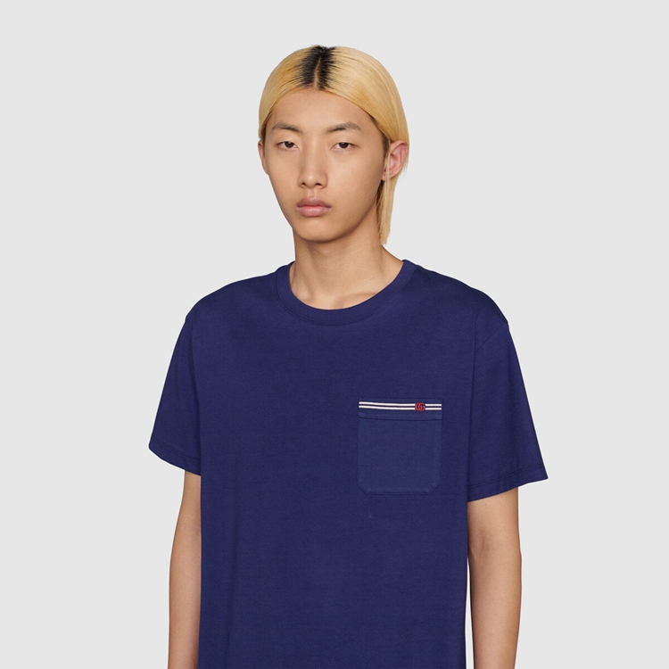 Style 673710 XJDVI 4456 A recurring detail of This collection, The Double G detail adds a subtle logo connotation to This T-shirt, Crafted from blue cotton jersey.
