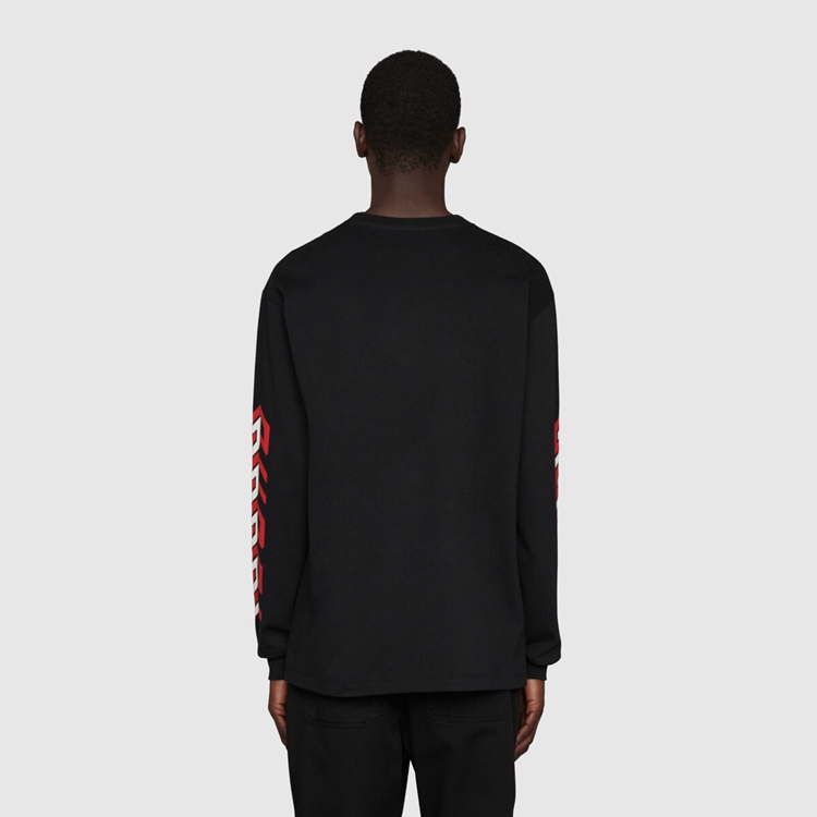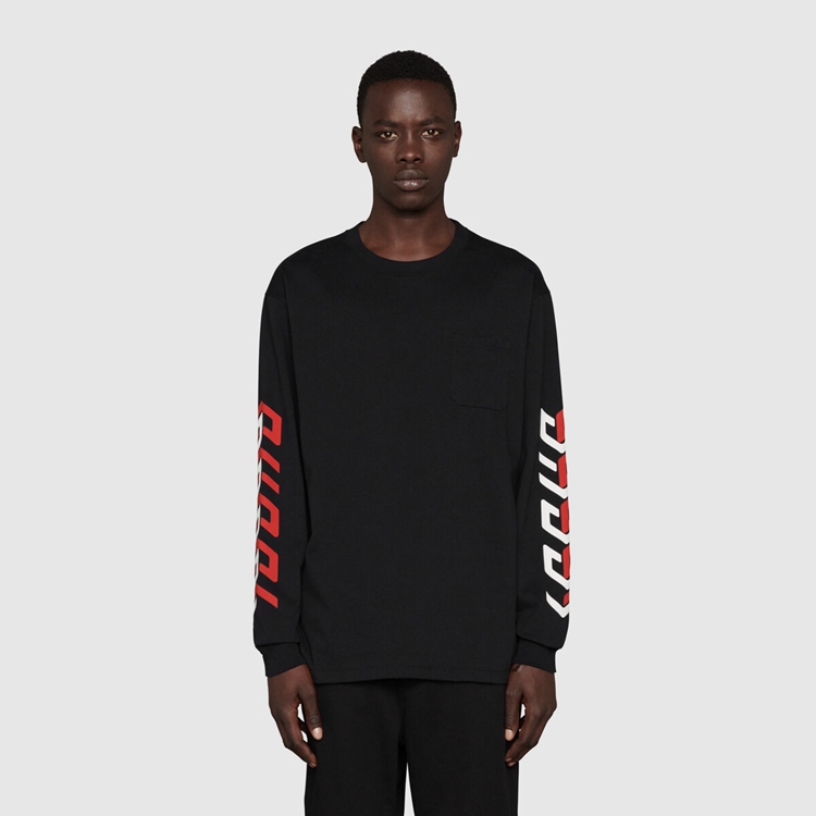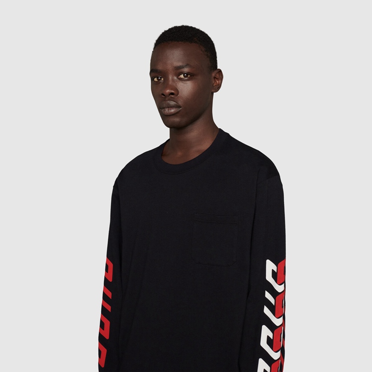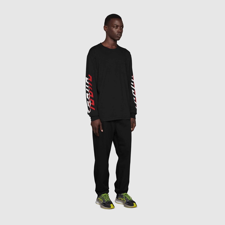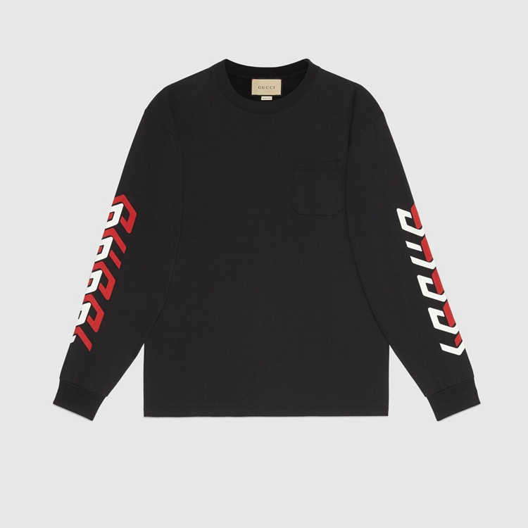 - Black cotton jersey With Gucci mirror print on The sleeves
