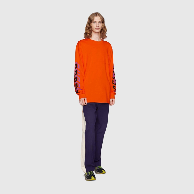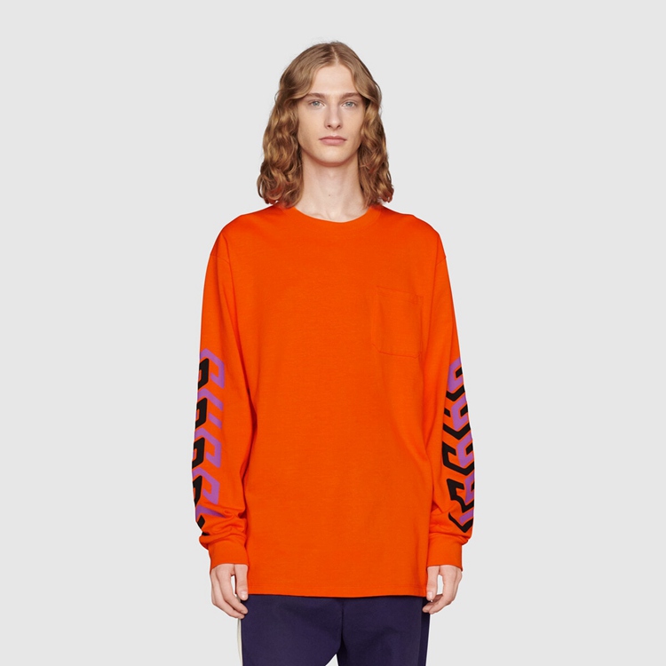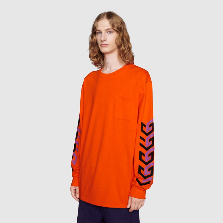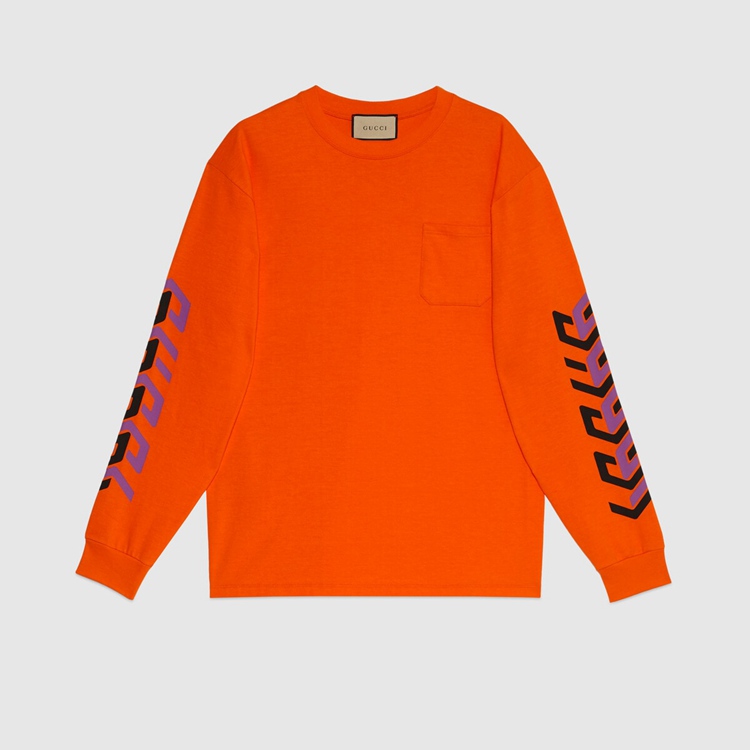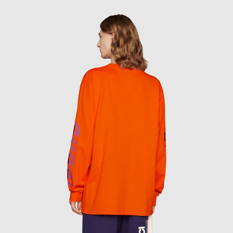 - Orange cotton jersey With Gucci mirror print on The sleeves