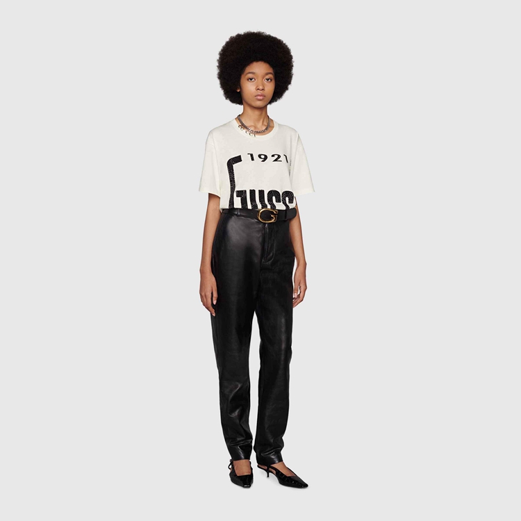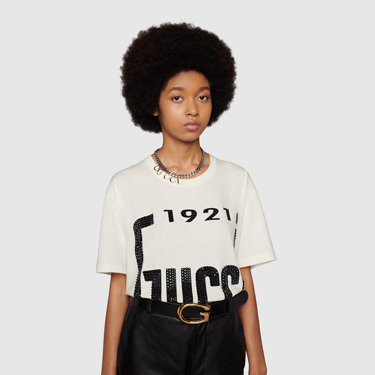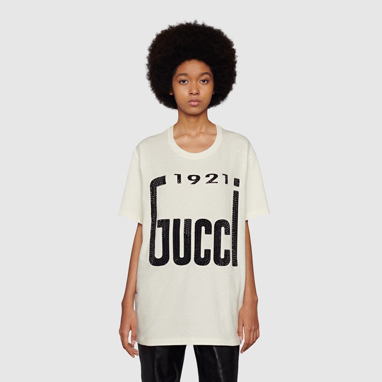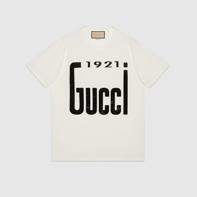 - Off-white heavy cotton jersey With crystal ‘1921 Gucci’ print