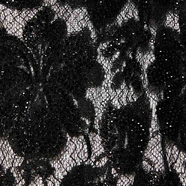 - Black lamé flower lace With crystal embroidery