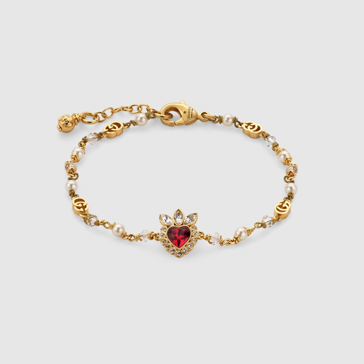- Clear crystals and red heart-shaped faceted crystal