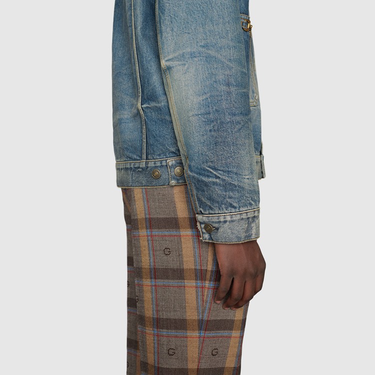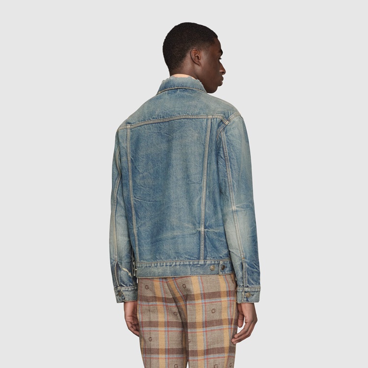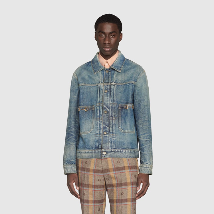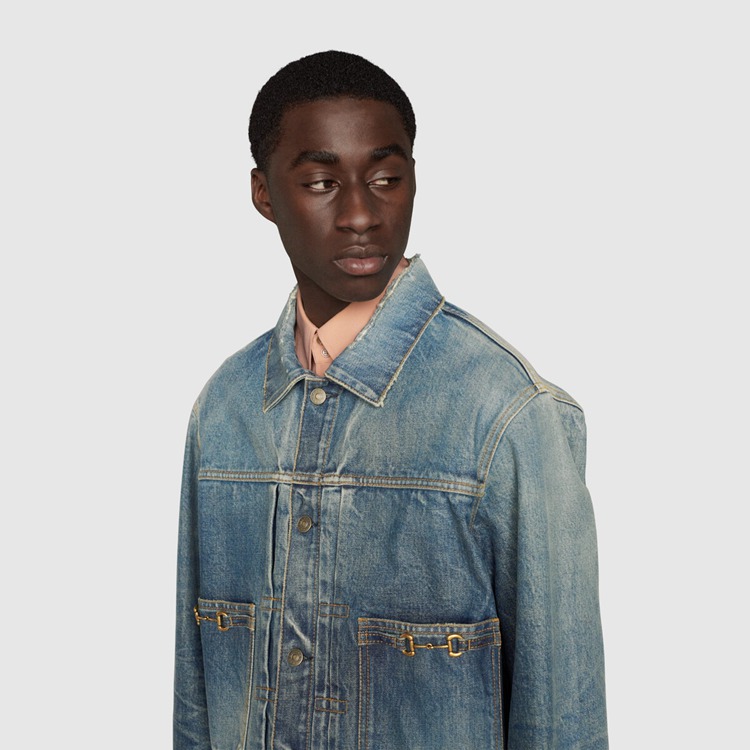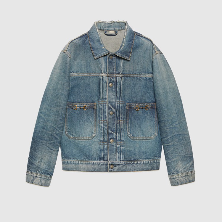 Style 669602 XDBR5 4759 Gucci makes a strong statement in denim, reworking The cult fabric in different shapes and treatments. Imagined as a complement For layered looks, This jean jacket is presented in blue washed denim, With an underground appeal balanced by Horsebit details on The pockets. The House’s most Emblematic codes from The archives are rejuvenated in a refreshing mix of Classic and contemporary that speak to a New aesthetic.
