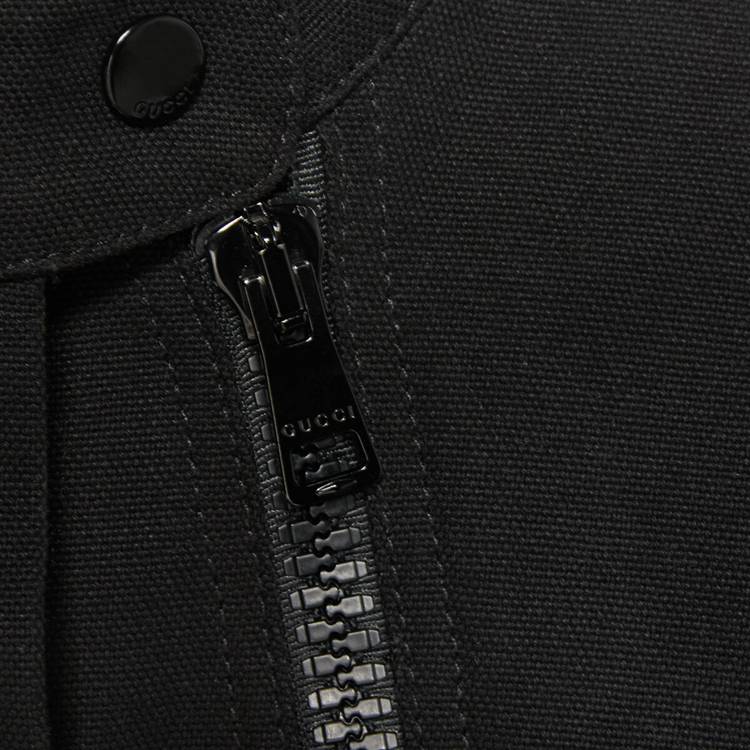 Style 701259 XDBZM 1043 The House continues to play With different aesthetics, infusing The daily With signature styles and symbols. Fabrics typically associated With The casual wardrobe find a New purpose on refined silhouettes infused With understated elegance. Following through The theme, This jacket is Crafted from black denim and features a leather Interlocking G tag on The back.