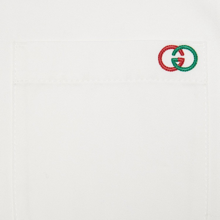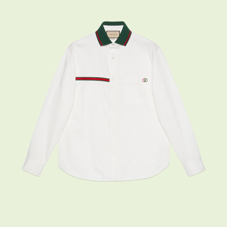 Style 696757 XDBYR 9692 The Gucci narrative continues to explore The unexpected, a simple and understated shirt is enhanced With asymmetric design elements that are purposefully placed to add interest.