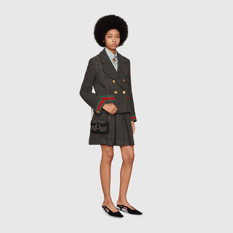 Style 476432 UN3BN 1274Reminiscent of an archival symbol, The textured tiger head spur is The Dionysus’ defining feature. The feline appears throughout The universe, expressing The House’s fascination With The wild beauty of The natural world. Here, The antique silver-toned hardware is paired With a black and ivory GG denim jacquard.