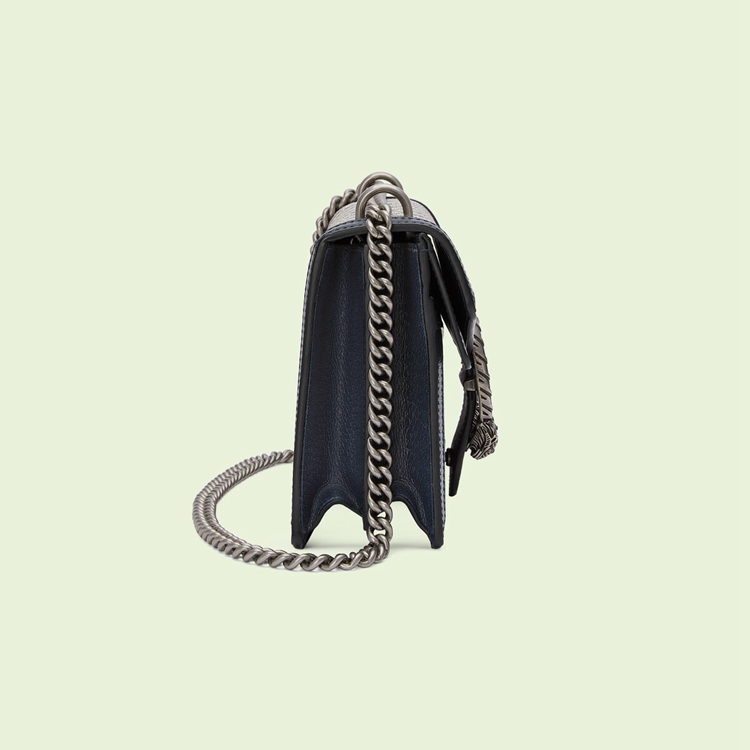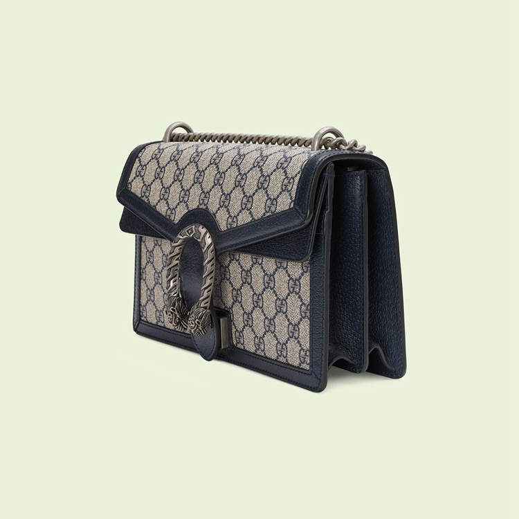 Style 400249 K9GSN 4075Mirroring The material’s historic origins, GG Supreme is introduced in a timeless mix of blue and beige For Gucci Love Parade. With a low environmental impact, The canvas has come to The front of each collection decade after decade to become a hallmark of The House. Here, The Classic palette defines This small Dionysus shoulder bag.